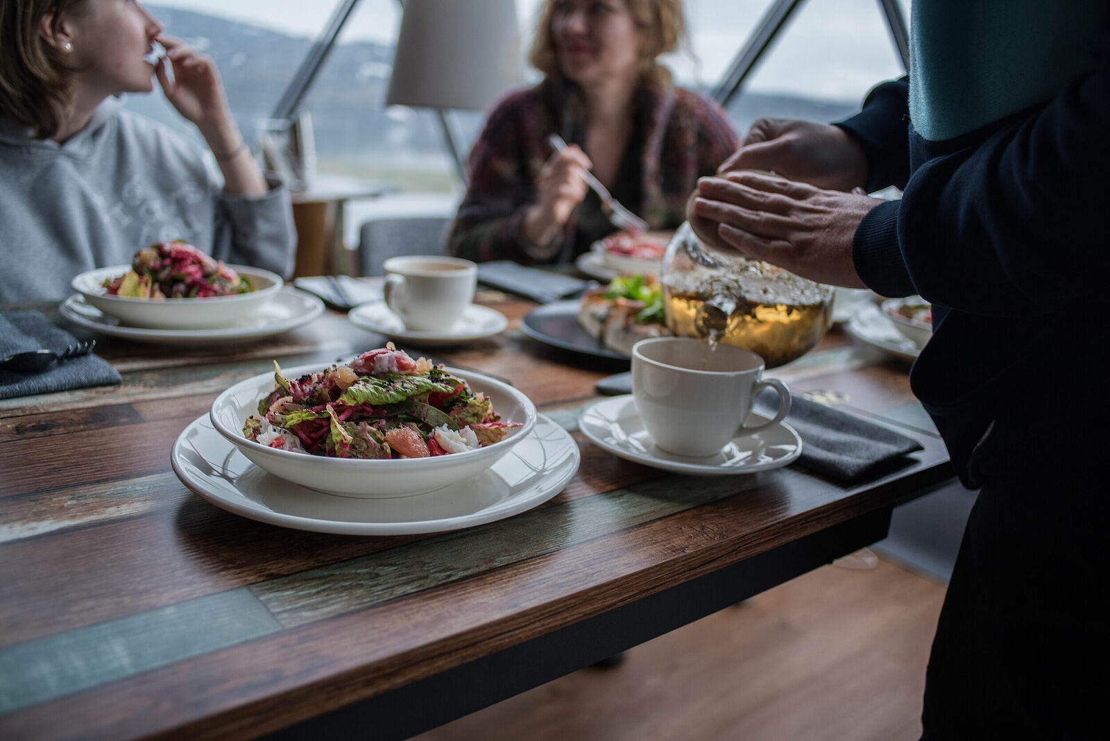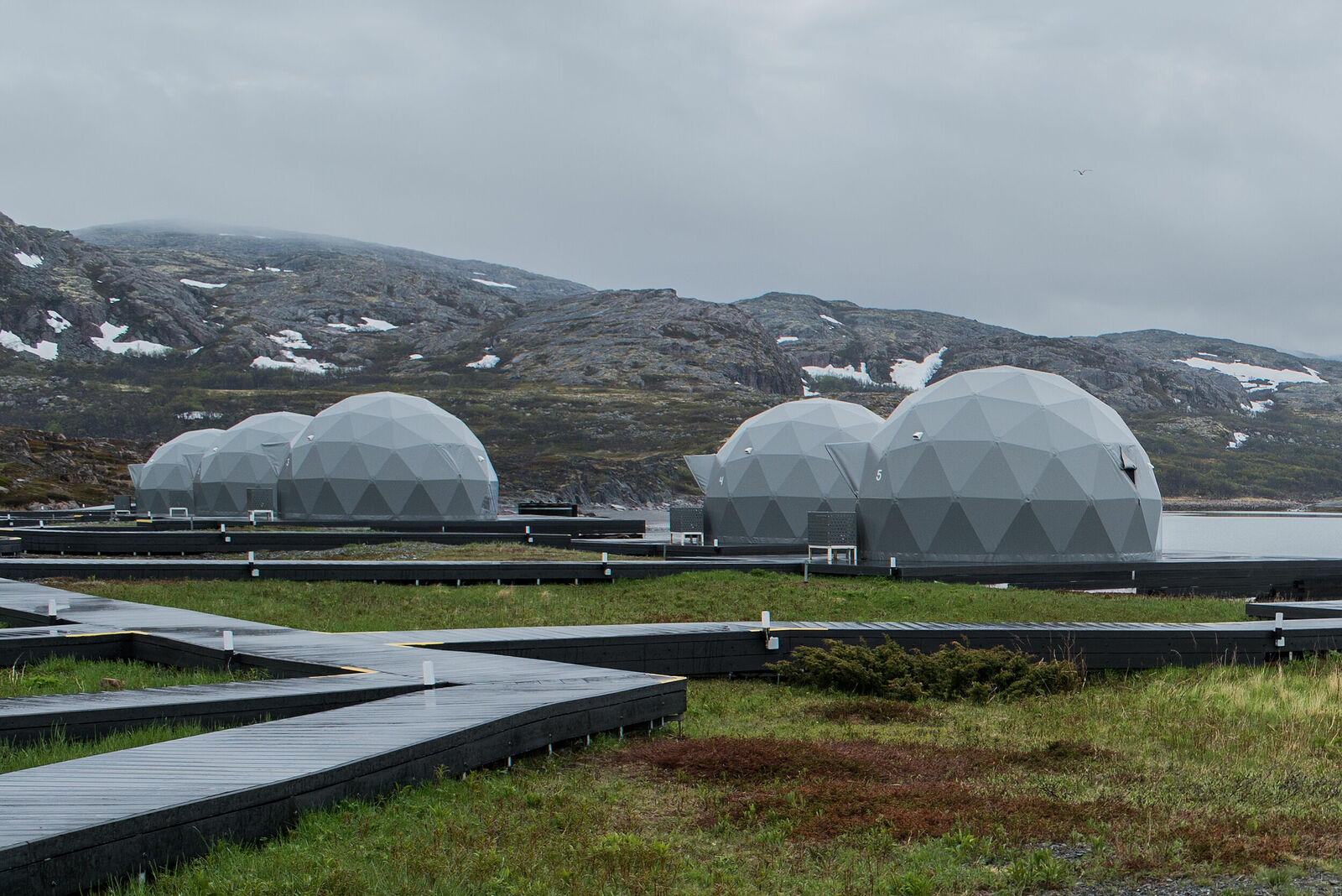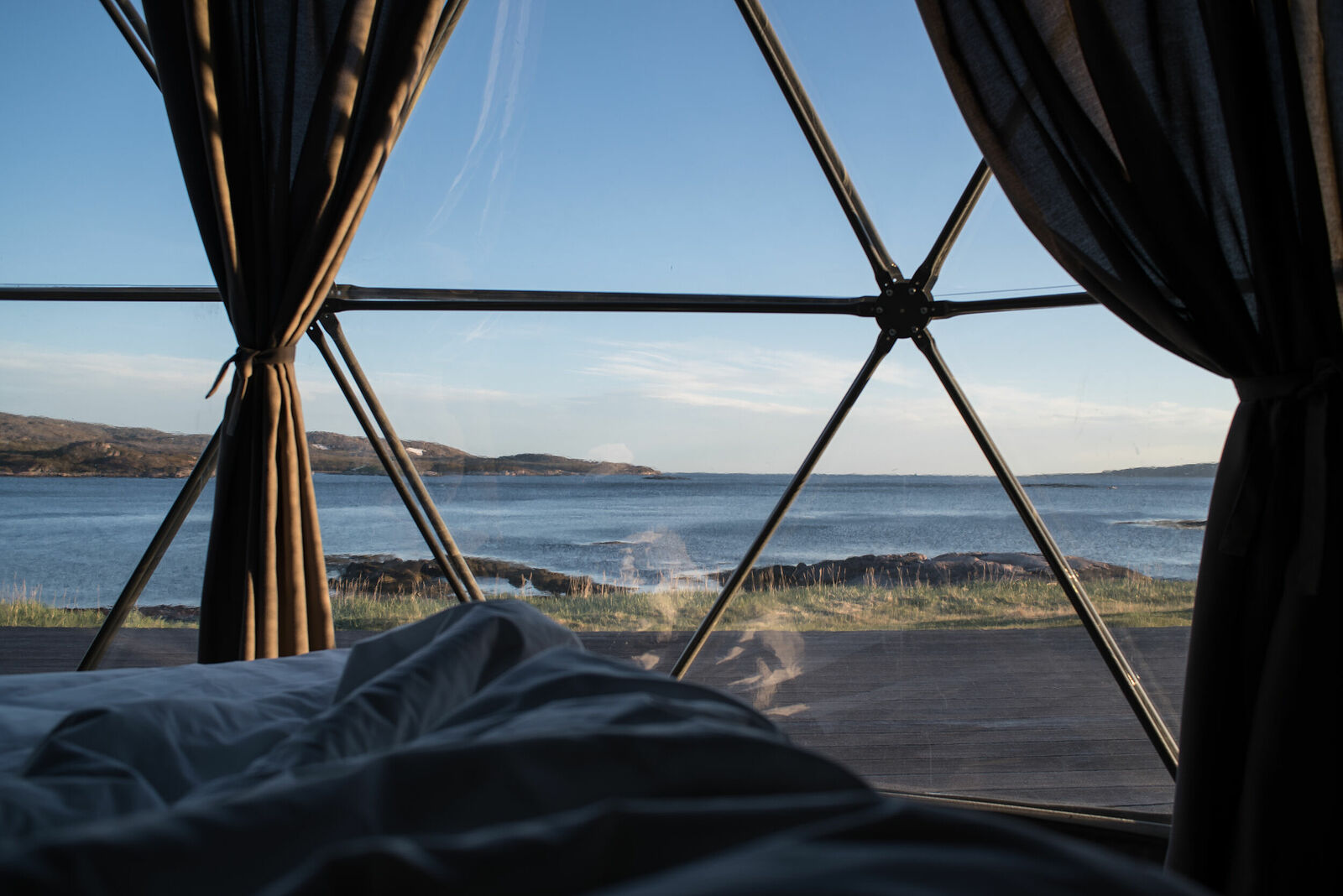 The view from the domes of the "Whale Coast" glamping site on the shores of the Barents Sea