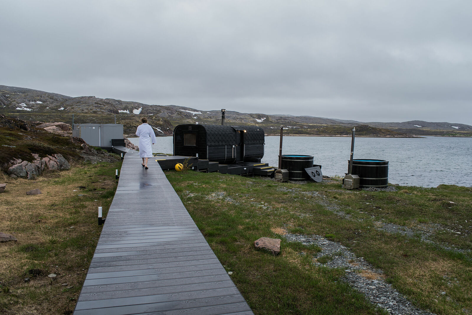 Saunas at the "Whale Coast" glamping site on the shores of the Barents Sea